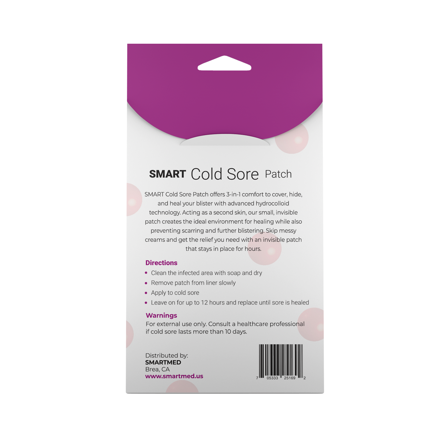 When you get a cold sore it can cause painful dryness, itching, and burning. It can also impact your confidence if you’re heading off to work or school. That’s why we created the SMART Cold Sore Patch that offers 3-in-1 comfort to cover, hide, and heal your blister with advanced hydrocolloid technology. Acting as a second skin, our small, invisible patch creates the ideal environment for healing while also preventing scarring and further blistering. A smarter, easier, more efficient way to heal your cold sore - skip messy creams and get the relief you need with an invisible patch that stays in place and encourages healing.