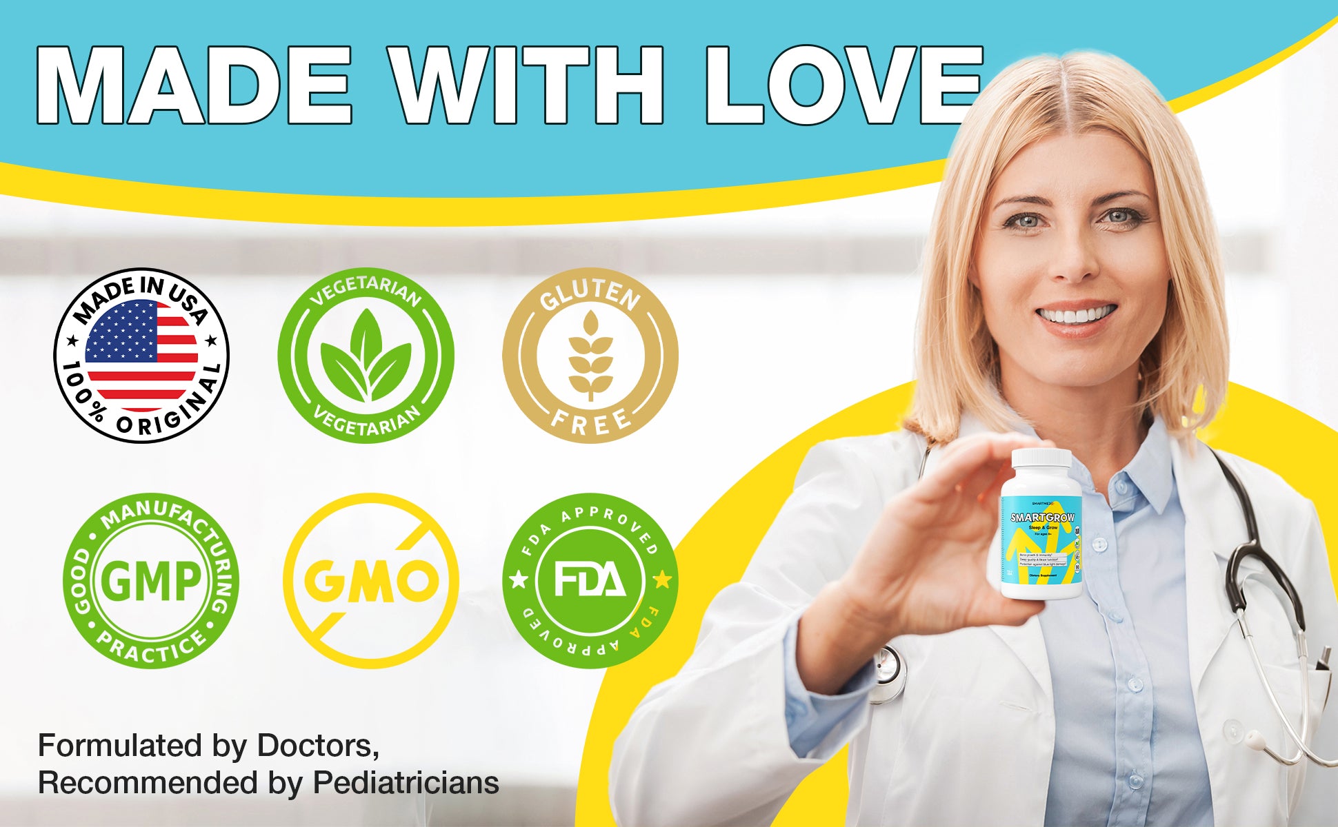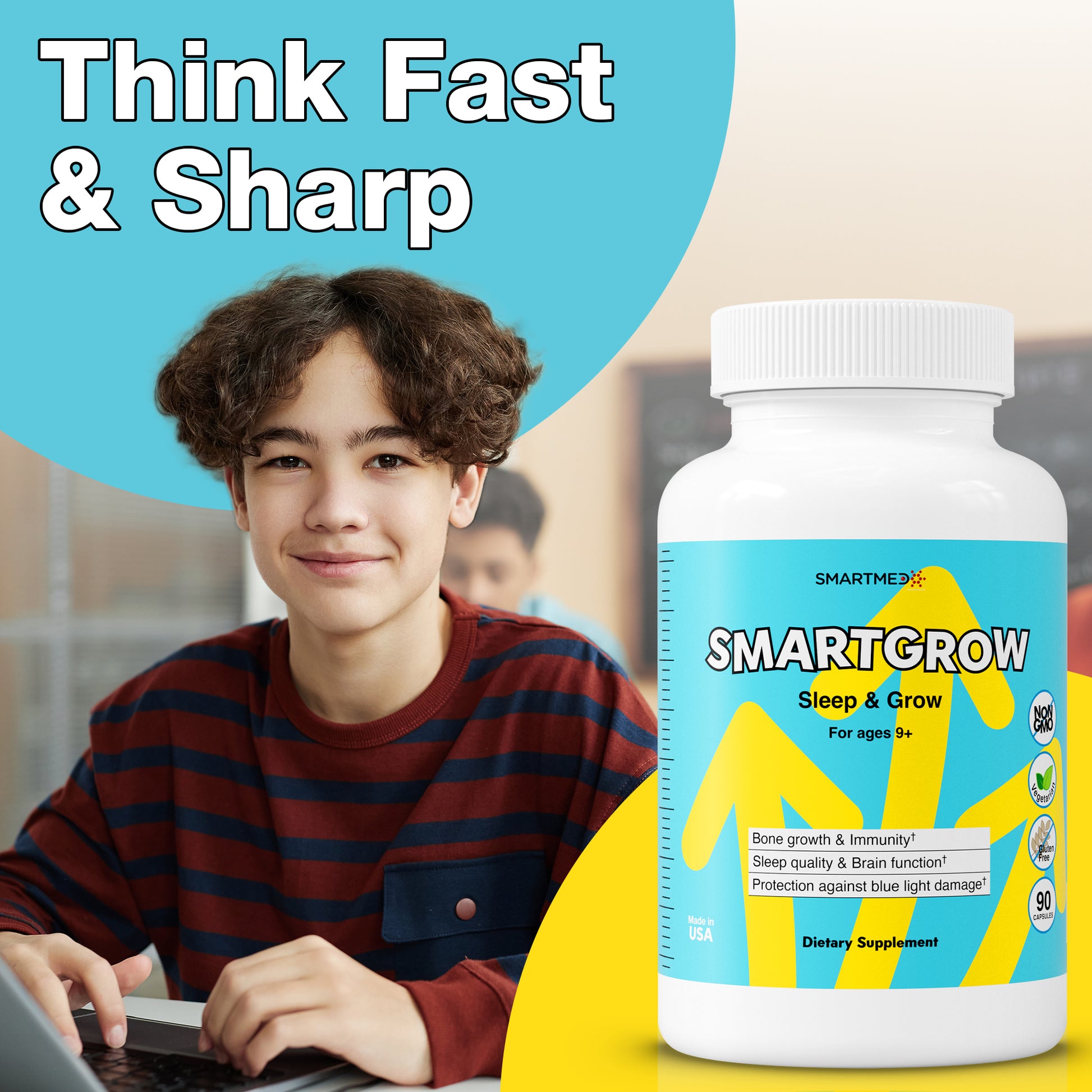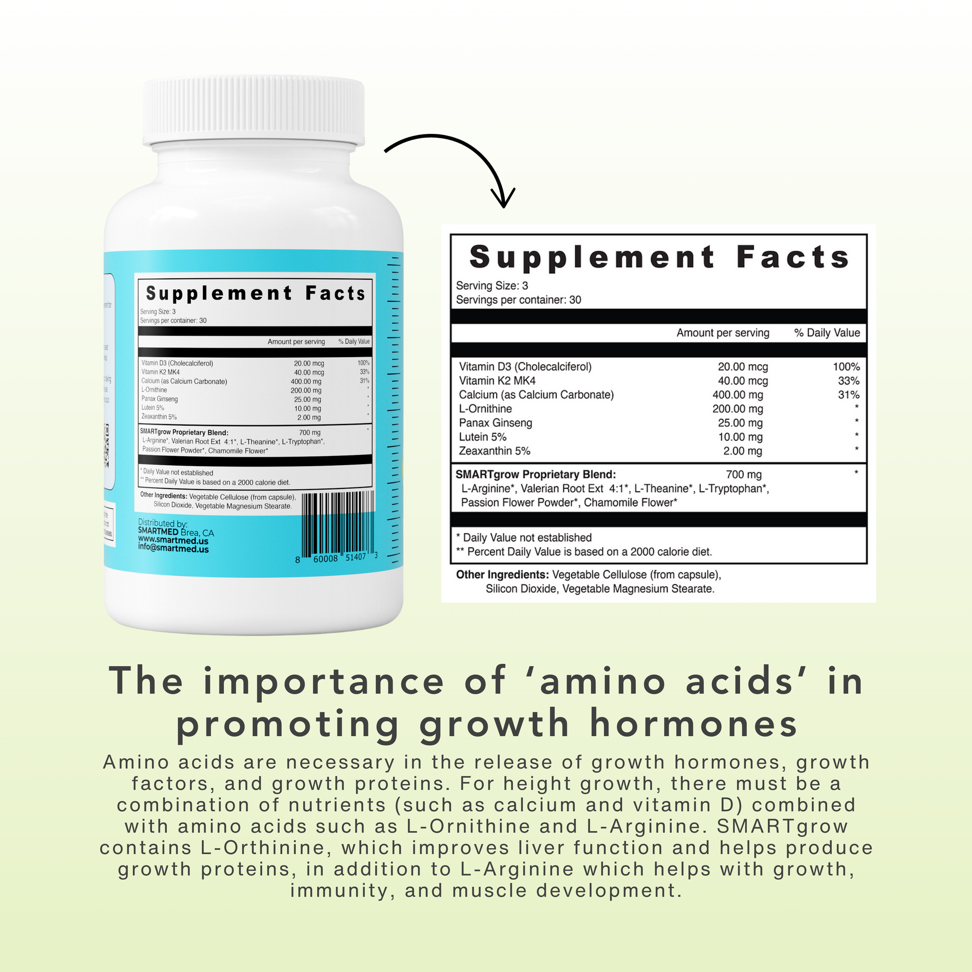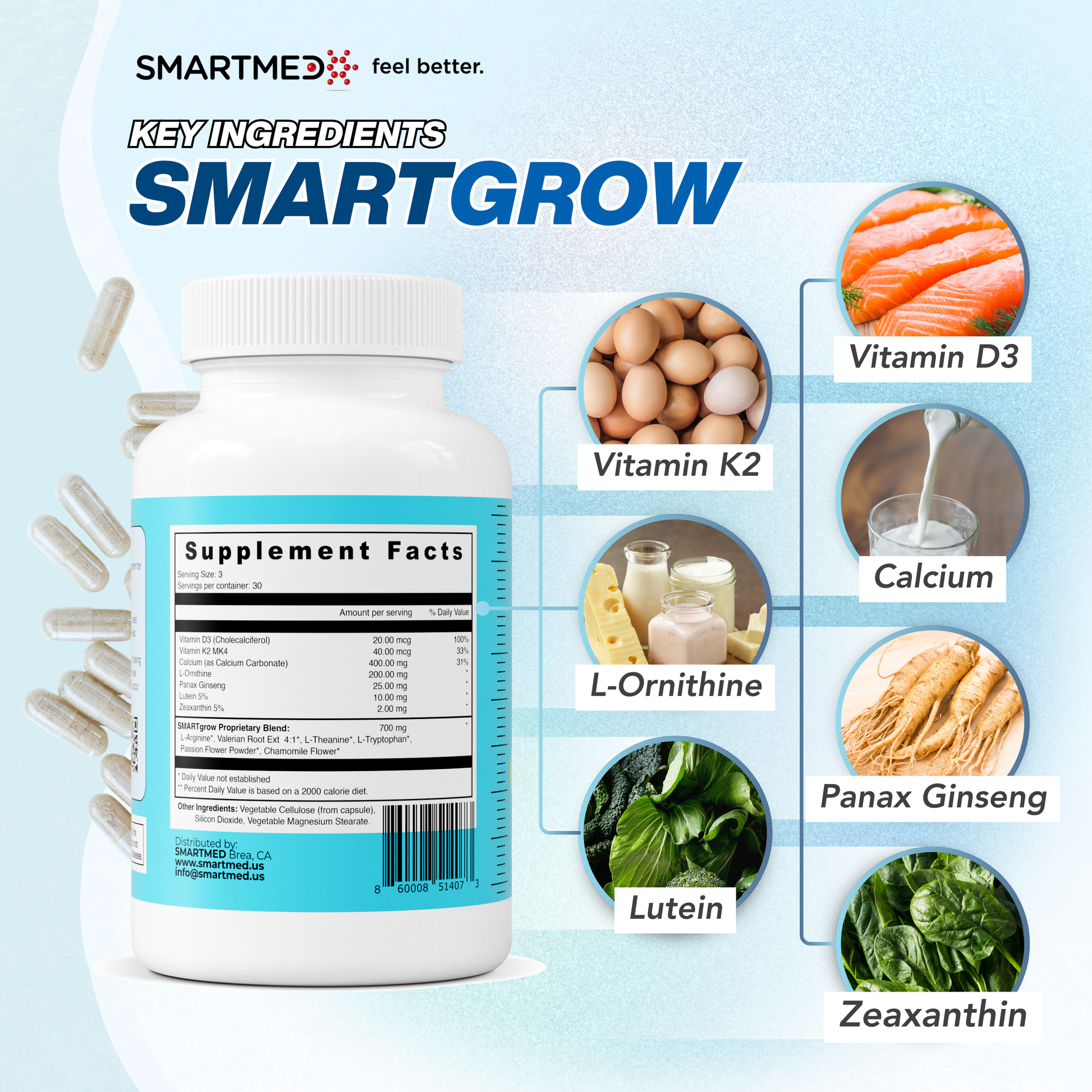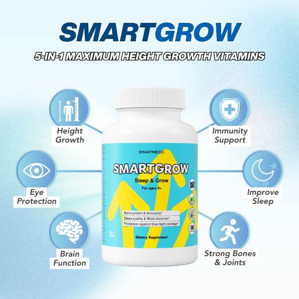 SMARTGROW 5-in-1 Maximum Height Growth Vitamins - Sleep Aid, Immunity Support, Eye Health, Brain Function