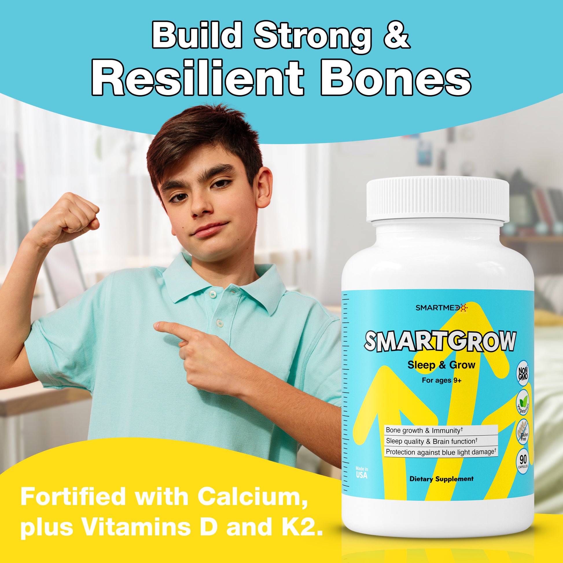 - Formulated with Calcium, Vitamin D3, and Vitamin K2 to support healthy bone development and joint strength during peak growth years.